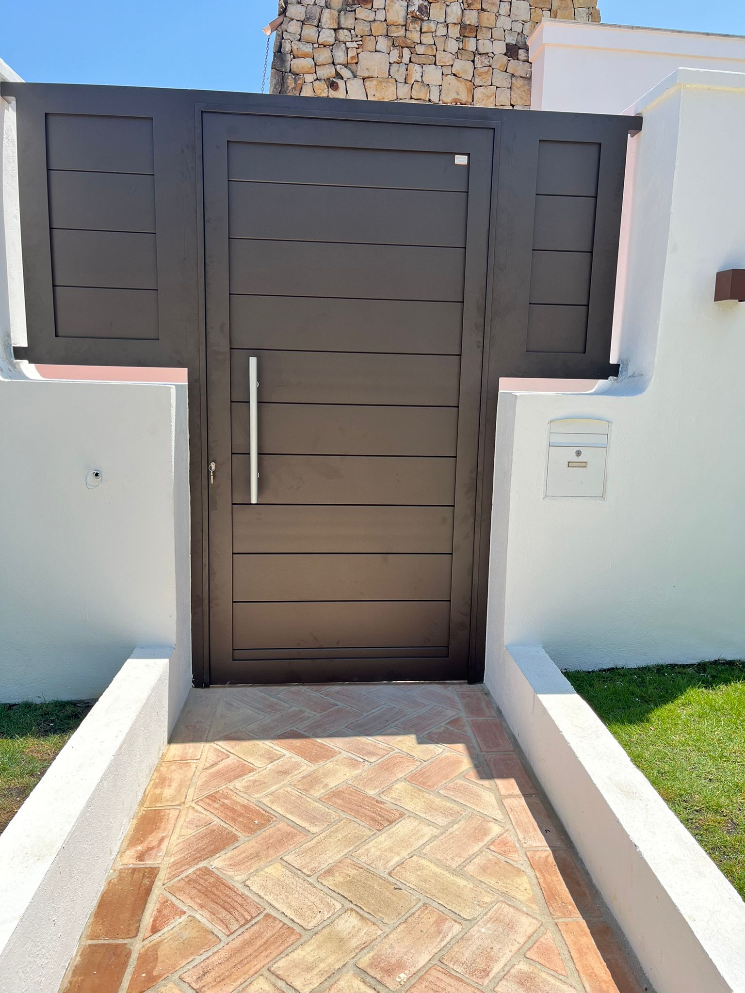 Puerta peatonal en aluminio + fijos laterales